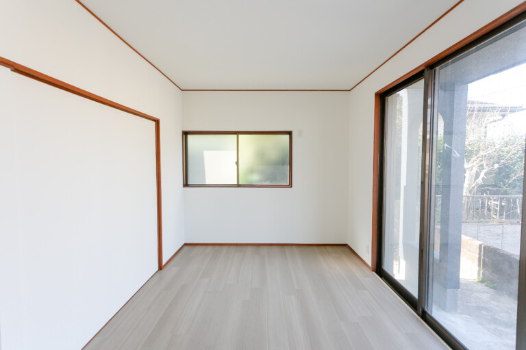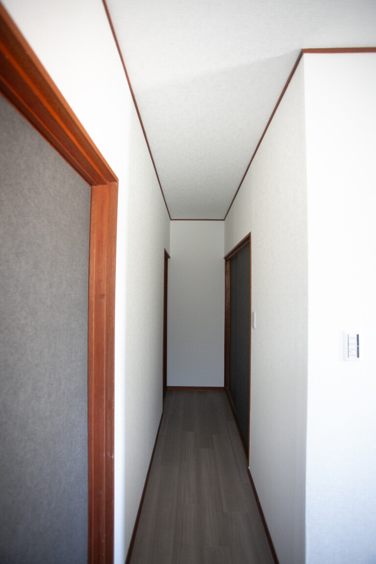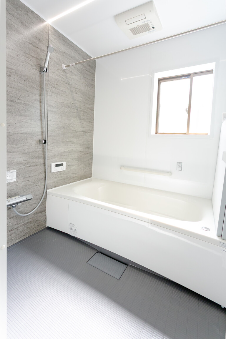 キッチンは間取りを変更し、開放感のある対面型の『Sクラス』を導入。お風呂には、ゆったりとした浴槽が特徴の『オフローラ』を選定し、広さを最大限に活かした癒やしの空間を演出しました。 内装は、壁紙に明るいホワイトを採用し、床材には深みのある落ち着いた色合いのフローリングを合わせることで、コントラストの効いた上品な空間に仕上げています。外壁はご要望通り、洗練された印象を与える濃いブルーグレーをご提案し、新築のような佇まいへと生まれ変わりました。