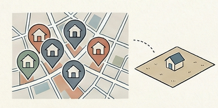 周辺環境: 隣家との距離感はもちろん、坂道の勾配や、大雨の際の水の流れなども事前に把握できます。