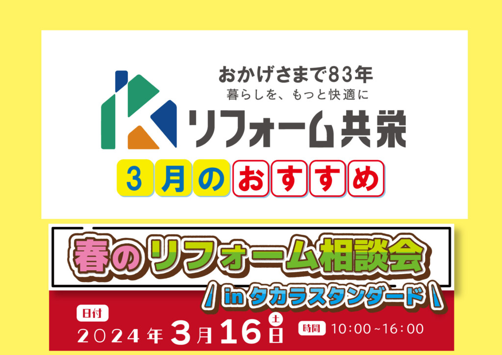 春のリフォーム相談会inタカラスタンダード 日付:2024年3月16日(土) 時間:10:00~16:00参加無料 事前予約制 来場者特典乃が美食パン1斤成約者特典JCBギフトカード1万円分プレゼント!! 限定9組!!相 […]
